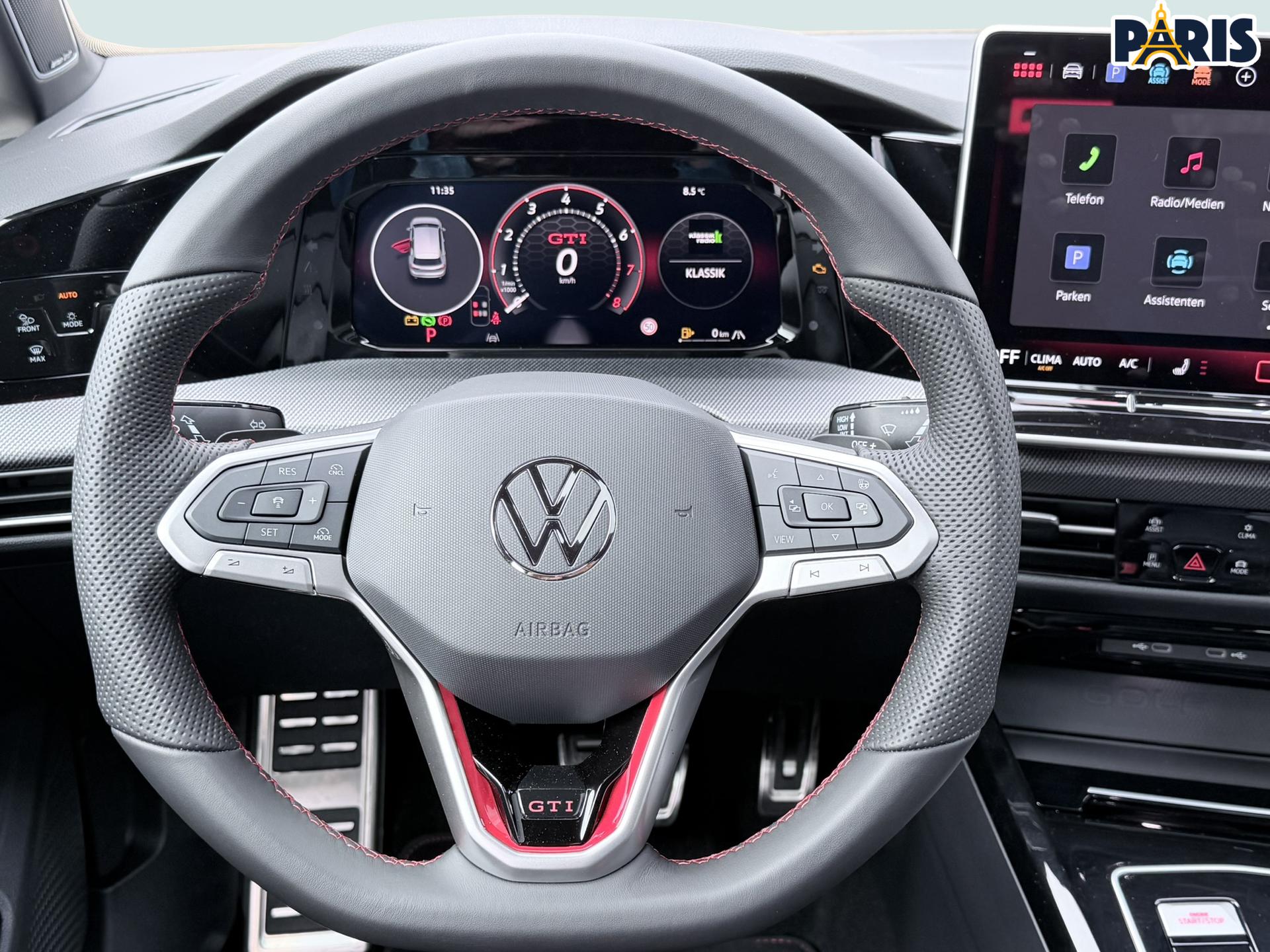 • GTI-Sportfahrwerk, um ca. 15 mm tiefergelegt (geringere Bodenfreiheit) vorhanden